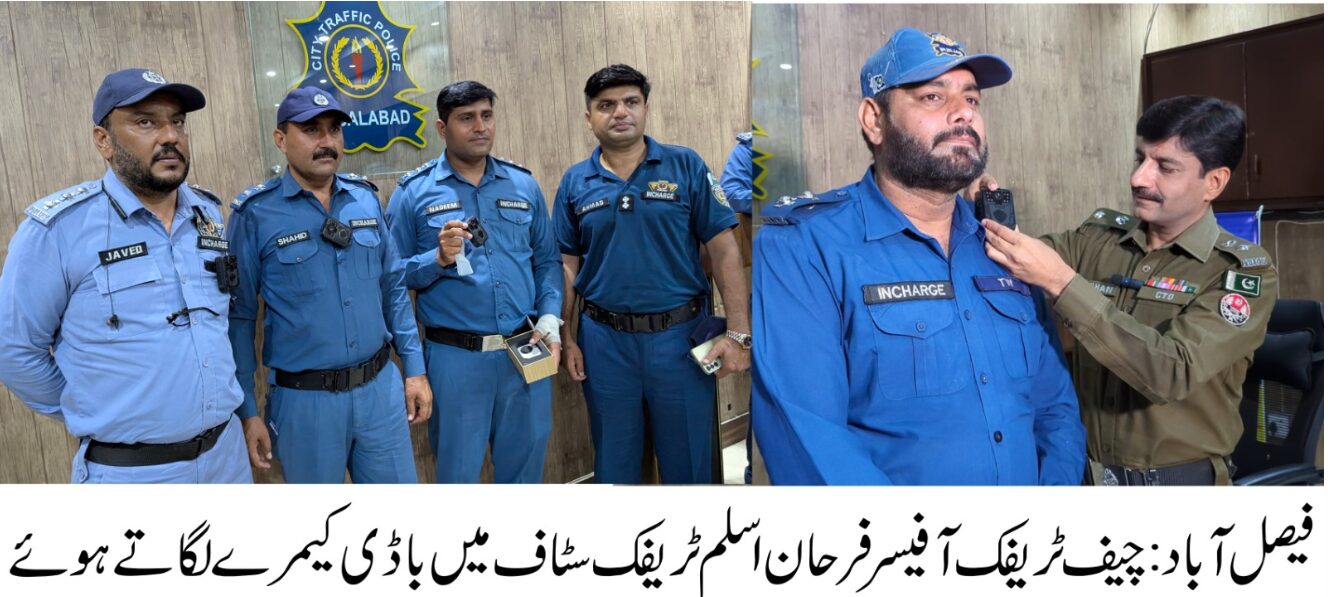 سٹی ٹریفک پولیس کے فیلڈ ٹریفک سٹاف میں باڈی کیمرے تقسیم کر دئیے گئے۔ ان کیمروں کی مدد سے انفورسمنٹ میں بہتری آئے گی اور کارروائی کی ریکارڈنگ کی جاے گی۔ ان خیالات کا اظہار چیف ٹریفک آفیسر فرحان اسلم نے کمروں کی تقسیم کے موقع پر کیا انہوں نے مزید بتایا کہ سڑکوں پر بہتر ٹریفک بہاؤ اور ٹریفک وائیلشن کی روک تھام کے لیے ایسے اقدامات کا تسلسل جاری ہے شہری ٹریفک قوانین کی پاسداری کریں
