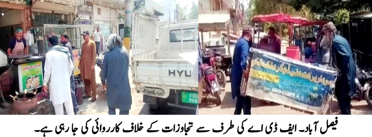 ڈائریکٹر جنرل ایف ڈی اے محمد آصف چوہدری کی ہدایات پر ایف ڈی اے کے زیر کنٹرول رہائشی کالونیوں و کمرشل مارکیٹس میں ہر قسم کی تجاوزات کے خلاف بھرپور آپریشن جاری ہے اس سلسلے میں ایف ڈی اے کی اینٹی انکروچمنٹ ٹیم نے مین بازار گلفشاں کالونی جھنگ روڈ میں کارروائی کرتے ہوئے تجاوزات کا صفایا کر دیا اور تجاوزات میں استعمال ہونے والا سامان قبضہ میں لیکر 16 دکانداروں کے خلاف چالان سپیشل جوڈیشیل مجسٹریٹ کی عدالت کو بھجوا دیئے ۔ تفصیلات کے مطابق گلفشاں کالونی میں دکانداروں کی طرف سے تجاوزات کے خلاف شکایات موصول ہو رہی تھیں کہ انہوں نے تجاوزات کر کے سٹرکوں اور عوامی گزرگاہوں کو روک رکھا ہے جس کے باعث ٹریفک کی روانی اور لوگوں کو آمد و رفت میں مشکلات پیش آرہی تھیں۔ ان عوامی شکایات کو دور کرنے کیلئے ڈائریکٹر جنرل ایف ڈی اے نے متعلقہ شعبے کو تجاوزات کے فوری خاتمے کا حکم دیا جس کی تعمیل میں ڈائریکٹر اسٹیٹ مینجمنٹ جنید حسن منج کی زیر نگرانی اسٹیٹ آفیسر فاران صدیق ہاشمی کی سرپرستی میں انسپکٹر اسلم انصاری و دیگر سٹاف پر مشتمل اینٹی انکروچمنٹ ٹیم نے آپریشن کیا اور دکانداروں کی طرف سے سٹرکوں اور عوامی راستوں میں رکھے گئے کاروباری کائونٹرز، کرسیاں، میز، سلنڈرز، پبلسٹی بورڈز و دیگر نوعیت کا سامان اٹھا کر راستوں کو کلیئر کر دیا گیا اور تجاوزات میں استعمال ہونے والا سامان قبضہ میں لیکر قصوروار دکانداروں کے خلاف چالان سپیشل جوڈیشیل مجسٹریٹ کی عدالت کو بھجوا دیئے۔ دکانداروں کو وارننگ دی گئی ہے کہ وہ آئندہ تجاوزات سے گریز کریں بصورت دیگر ان کے خلاف فوجداری مقدمات بھی درج کرائے جاسکتے ہیں۔